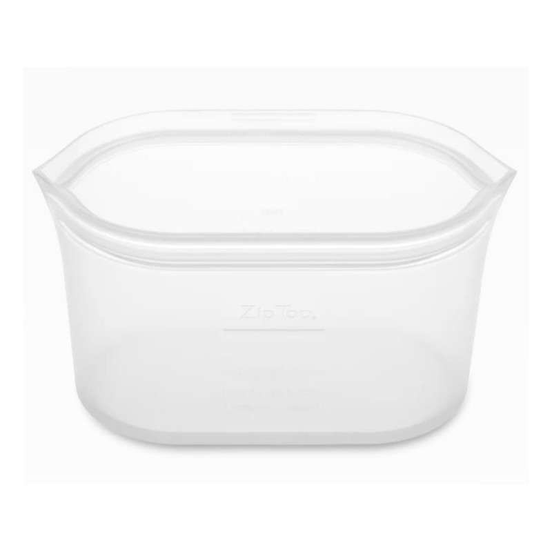 Contenedor reutilizable de silicona Zip Top® si estás listo para reducir tu consumo de plástico, este producto es perfecto para ti. Está diseñado con silicón de grado alimenticio y, a diferencia de otros contenedores y bolsas resellables, no tiene pegamento o deslizadores de plástico que puedan dañar tu salud. La parte superior permanece abierta y las cremalleras no se superponen en las esquinas como las cremalleras normales, por lo que es mucho más fácil de limpiar. Además, tiene una base resistente que lo mantiene de pie para que puedas verter tus alimentos fácilmente sin tener que sostenerlo con una mano. Lo mejor de todo es que no solo sirve para almacenar los alimentos, también puede meterse al microondas para calentar la comida o al congelador para enfriarla por completo. Si no estás 100% convencido aún, toma en cuenta que un solo Zip Top es capaz de reemplazar hasta 500 bolsas desechables, así que es mucho mejor para el planeta.ReutilizableGrande Sin pegamento ni cierres de plásticoDiseñado para un uso y limpieza fácilesSe mantiene de pie y abierto para que puedas verter tus alimentosIdeal para almacenar, calentar en microondas y congelarGrado alimenticioUna alternativa más ecológica; cada Zip Top reemplaza 500 bolsas desechablesEstilo recipiente; puedes consumir tus alimentos dentro del mismo para no ensuciar más platosLibre de BPA, plomo, PVC y ftalatosGrado alimenticioUso seguro en congelador, microondas y lavavajillasLavar a mano con agua y jabónLavar antes del primer usoCierre herméticoIdeal para alimentos sólidos o líquidosSilicona platinoCapacidad: 946 mLTransparenteMedidas: 20.99 cm de ancho, 20.95 cm de largo y 12.39 cm de alto