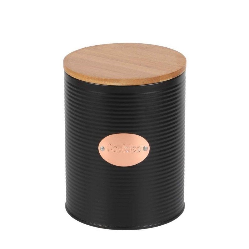 Contenedor de acero mediano DTK™ un detalle elegante que mantendrá tu alacena bien organizada. Fabricado con acero galvanizado de un hermoso tono negro y acompañado de una tapa de bambú que mantiene el contenido seguro contra el polvo, este práctico contenedor es perfecto para ordenar tus sobres de azúcar, galletas, bolsas de té u otros ingredientes. En la parte inferior está recubierto por un anillo de silicona que evita que tus superficies se rayen cada vez que lo mueves. Úsalo para ordenar tu cocina y dale un aspecto renovado con DTK.RedondoHermoso color negroPlaca de aluminio en color oro rosaDiseño texturizadoAnillo de silicona en la parte inferiorAcero galvanizado/bambúPeso: 421 gEvite meter al lavavajillasLavar a mano con agua y jabónMedidas: 14.5 cm de ancho y 19 cm de alto