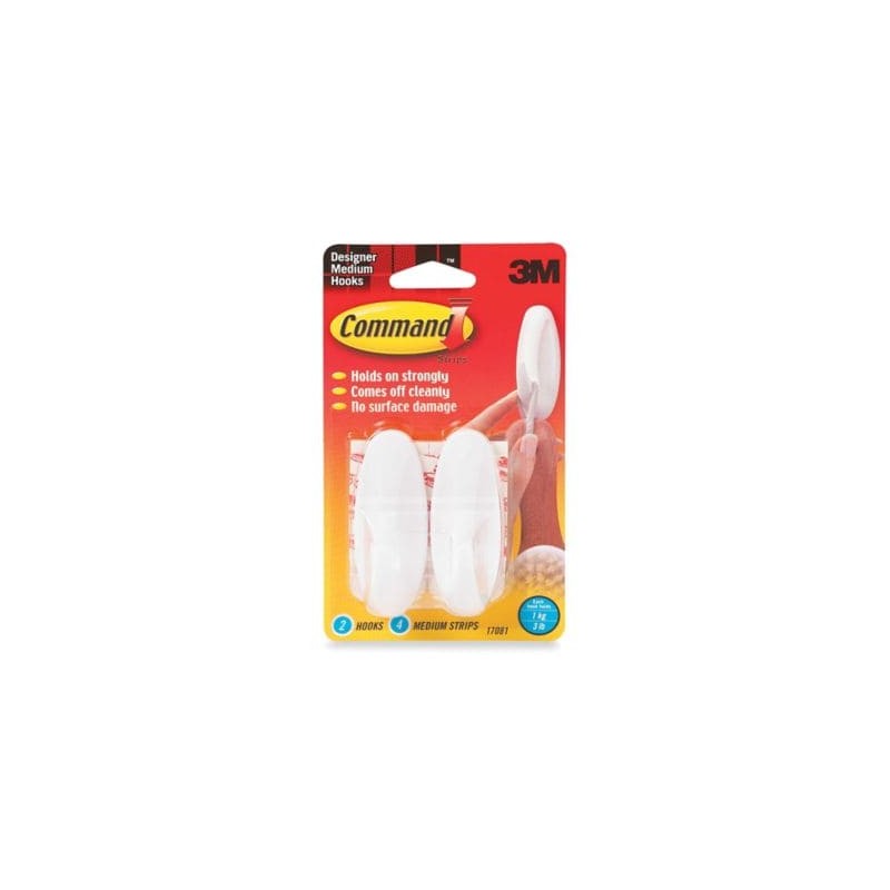 Ganchos medianos 3M Command™ usa estos prácticos ganchos para colgar objetos en tu casa sin causar daños. Se sujetan a las paredes con tiras adhesivas que no dejan residuos ni manchas cuando son retiradas.Incluye:2 ganchos4 tiras adhesivasFuncionan en muchos tipos de superficies Medidas: 7.93 cm de largo, 2.85 cm de ancho y 2.85 cm de profundidad Cada gancho sostiene hasta 1.36 kg De importación